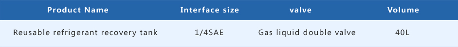 Reusable refrigerant recovery tank is specially equipped for portable refrigerant recovery and filling machine. It is easy to carry, light weight and reusable