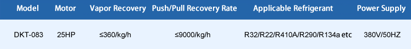 DKT-083 Refrigerant Residual Gas Recovery Machine is specially designed for the rapid recovery of residual refrigerant gas in storage tanks, and is suitable for use in the tank safety inspection industry, chemical plants, refrigeration equipment manufacturers and other places.