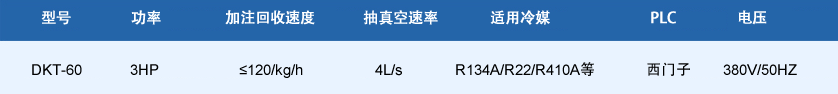 DKT-60全自動(dòng)冷媒回收加注機(jī)是專為中小型制冷設(shè)備生產(chǎn)線設(shè)計(jì)制造的一款快速抽真空、加注、回收的一款多功能設(shè)備。